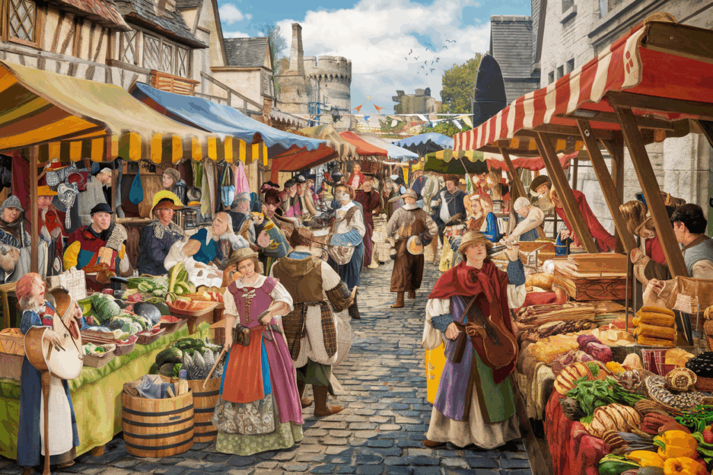 Manchmal stolpere ich über dieses Klischee vom grauen, eintönigen Mittelalter und muss mir echt auf die Lippe beißen. Weil jeder, der sich länger als zehn Minuten mit dem Alltag dieser Zeit beschäftigt, merkt ziemlich schnell: Da war richtig Leben drin. Mir ging’s jedenfalls so, als ich das erste Mal tiefer in Beschreibungen von Städten und Dörfern eingetaucht bin. Plötzlich war da Farbe, Lärm, Essen, Musik – und ja, auch Chaos. Aber halt lebendiges Chaos.