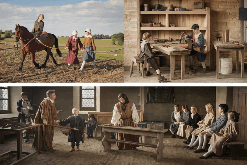 Bei Bauernfamilien kann ich mir fast bildlich vorstellen, wie ein Kind morgens aus dem Bett gekickt wurde, weil die Kühe schon ungeduldig waren. Da wurde nicht diskutiert. Wenn ein Kind nicht mithalf, entstanden echte Konsequenzen: weniger Ernte, weniger Essen, mehr Risiko. Einmal habe ich versucht, diesen Rhythmus nachzuvollziehen, indem ich an einem Wochenende „wie ein Bauernkind“ leben wollte. Totaler Quatsch, ich hab nach ein paar Stunden Muskelkater bekommen und mir wurde klar, wie naiv wir manchmal auf dieses Thema schauen. In einer Bauernfamilie bedeutete Erziehung im Mittelalter vor allem, Kinder so früh wie möglich fit für die körperliche Arbeit zu machen.