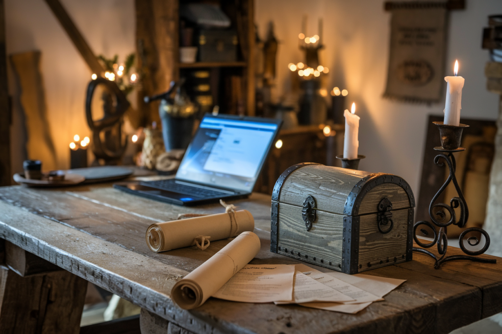 Mittelalter Dekoration online zu kaufen war für mich am Anfang ehrlich gesagt ein kleines Abenteuer. Ich dachte, ich gebe einfach „Mittelalter Deko kaufen“ bei Google ein, klicke auf das erste Ergebnis und fertig. Tja. Nach der dritten Lieferung mit billigem Kunststoff und schief verklebten Beschlägen war klar: So einfach ist es nicht.